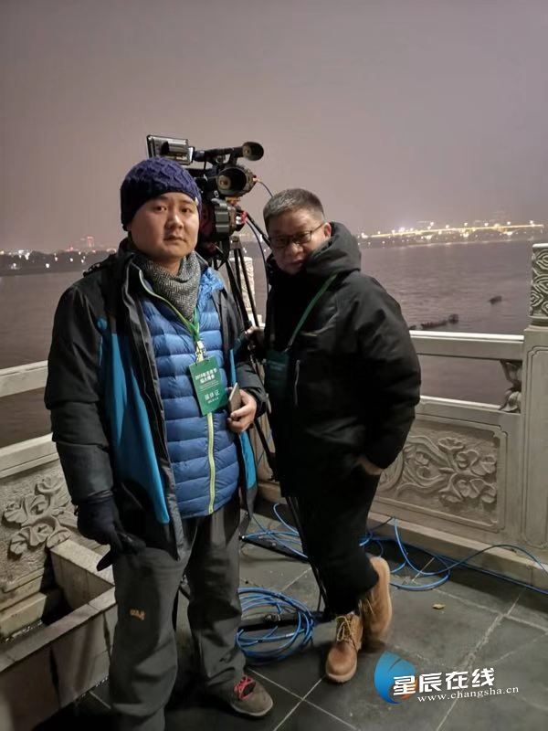 昨天,杜甫江阁二楼观礼台,成了星辰直播团队活动现场办公点,摄像师下午2点就在现场架设机位测试信号,寒风中,几台摄像机临湘江而立,与橘洲上空威仪对视,如勇士驻守星城,记者们各行其职,井然有序,笔者全程见证直播团队每个人“战地勇士”的风采。