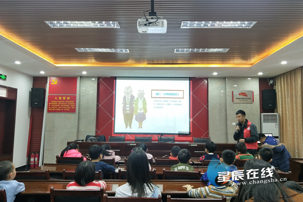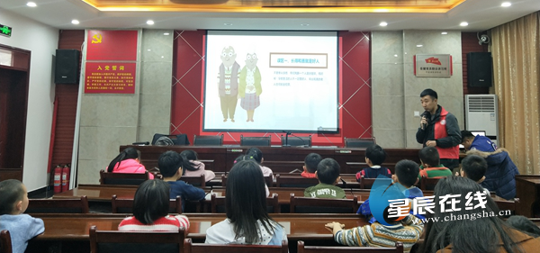 星辰在线3月18日讯(通讯员 胡雅清、彭丹)“陌生人,给零食,莫伸手,不贪吃;陌生人,来搭茬,不说话,转身走……”,3月17日上午,望月湖街道湖东社区三楼活动室内传来孩子们整齐的朗诵声。为提高辖区青少年自我保护意识和安全意识,望月湖街道湖东社区联合长沙市飞翔教育创新发展中心开展了一场以“守护花朵,共‘童’行动”为主题的公益巡讲进社区活动,本次活动共吸引辖区内六十余位家长和孩子积极参与。