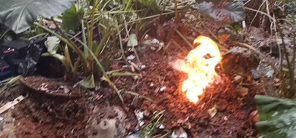 当天下午5时左右,家住朝阳街道二里牌社区向韶村3栋的一位嗲嗲像往常一样回家,突然从绿化带里传来一声巨响,并伴有泥土和火星飞溅到两层楼高。随即绿化带中升起一阵浓烟,一股刺鼻的气味传来。“什么爆炸?!”见此情形,嗲嗲赶紧联系了社区人员和街道安委办。