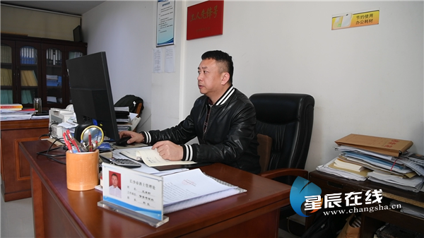 (王岸舸正在办公。以上图片均为星辰全媒体记者 丁木村/摄。)