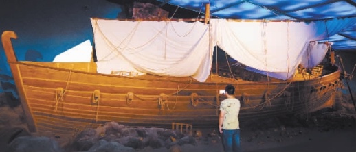 (等比例还原的“黑石号”沉船吸引参观者驻足。)