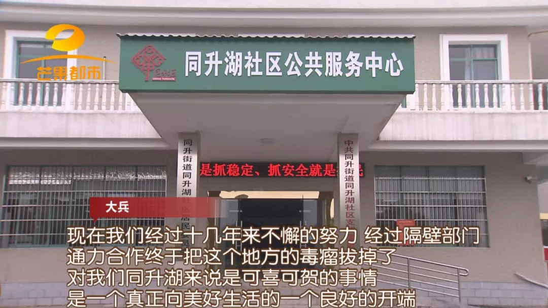 大兵:现在我们经过十几年来不懈的努力,经过各个部门通力合作,终于把这个地方的毒瘤拔掉了。对我们同升湖来说,是可喜可贺的事情,是一个真正向美好生活的一个良好的开端。我们是一个很好的范例。