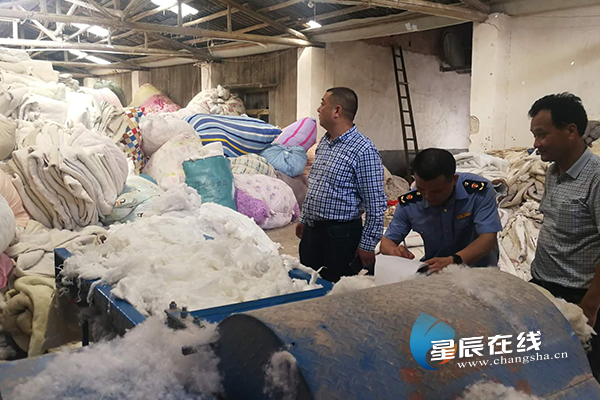 星辰在线4月26日讯(通讯员:周清)4月25日下午,芙蓉区东岸街道安委会联合东岸市场监督管理所、街道城管办、公共安全办、杉木村等部门开展联合整治行动,查封杉木村七组一家无证生产棉被加工厂。