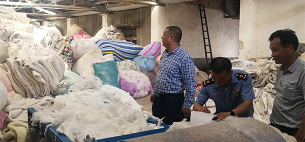 (无证生产棉被加工厂被查现场,图片由通讯员提供)