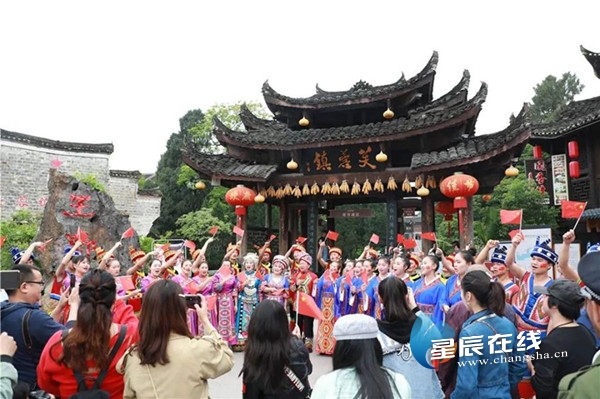星辰在线5月2日讯(通讯员 贺鹏)“我和我的祖国,一刻也不能分割;无论我走到哪里,都流出一首赞歌……”五一当天,人气爆棚的芙蓉镇-红石林度假区就用这样一场别开生面的“华服快闪”唱响了华夏乐章。