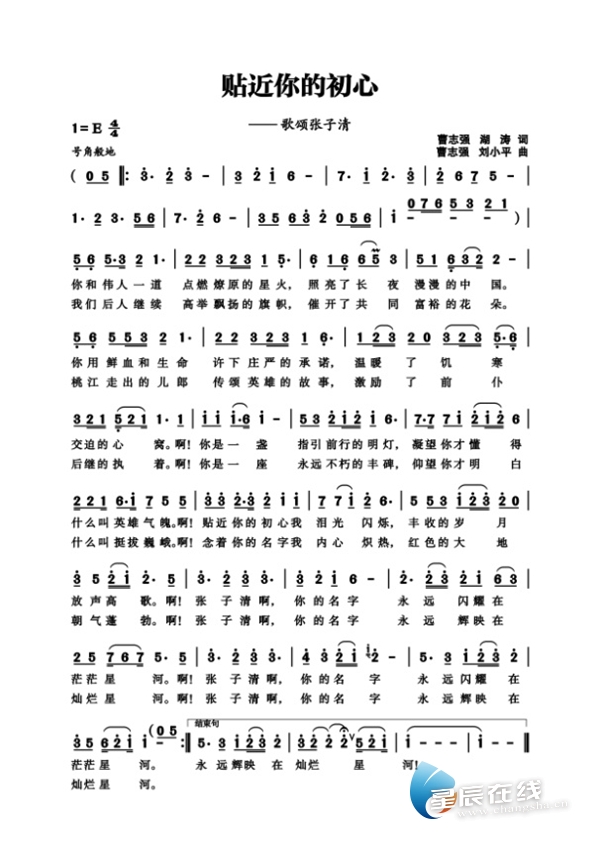 “天地英雄气,千秋尚凛然。”歌曲《贴近你的初心》正是我们后人对革命前辈张子清的永远铭记与无限敬仰。历史星河灿烂,英雄的名字闪耀不朽,指引我们奋勇前行!