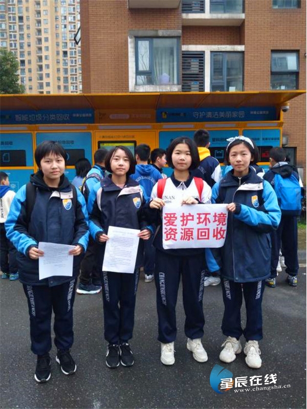 (同学们在参加垃圾分类活动。未署名图片均由 长郡双语实验中学 提供)