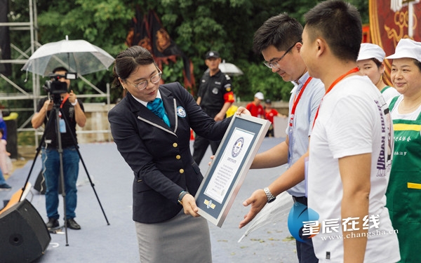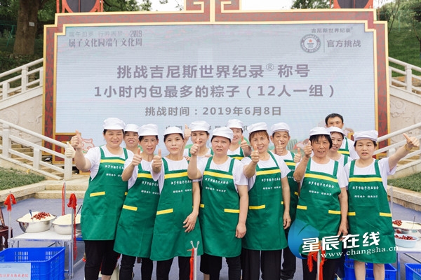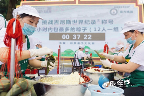 星辰在线6月8日讯(通讯员 谢雁雄)湖南汨罗是端午民俗的发源地,6月8日,在汨罗屈子文化园,12位“包粽子达人”为一组,向“一小时内包粽子最多的吉尼斯世界纪录”发起挑战,最终,他们在一小时内包了1627个粽子,创下新的吉尼斯世界纪录。