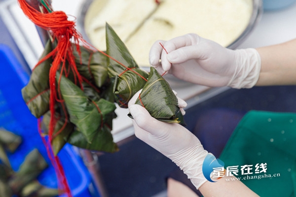 据了解,这项吉尼斯世界纪录挑战赛,除了对粽子个数有要求以外,还有一些特殊的规范标准:选手们包的是汨罗特色“牛角粽”,馅料是糯米和红枣;每一个粽子都要包裹严实,不能漏米,而且单个粽子要超过100g才算合格。