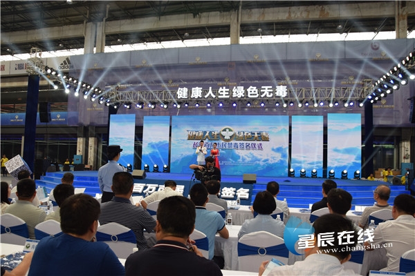 星辰在线6月26日讯(星辰全媒体记者 柳佳路) 6月26日上午,“健康人生,绿色无毒” 长沙百万市民禁毒签名仪式在长沙县三一工业城体育馆(乐运魔方)举行,随着与会领导与嘉宾共同在电子签名板上签下名字,数十万市民的电子签名瞬间在屏幕上汇聚组成禁毒LOGO,象征着长沙新一轮禁毒人民战争的集结号再次吹响。