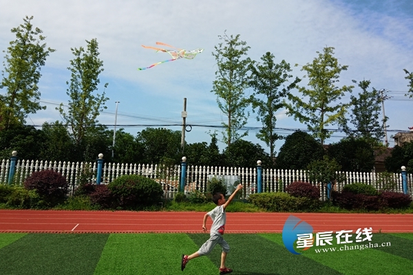 (放自己画的风筝,成了假期里孩子们最开心的事之一。图片由蔡明慧 曾一宸/摄)