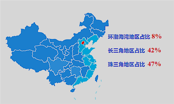 (目前,中国SMT行业总产线条数共8万—10万条,主要集中在珠三角、长三角、环渤海湾地区。资料图)