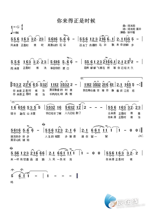第三届中国(湖南)安化黑茶文化节主题歌《你来得正是时候》,由有“现代民歌教父”之称的作曲家何沐阳作曲,何沐阳、蒋平填词,华语乐坛著名女歌手徐千雅演唱。