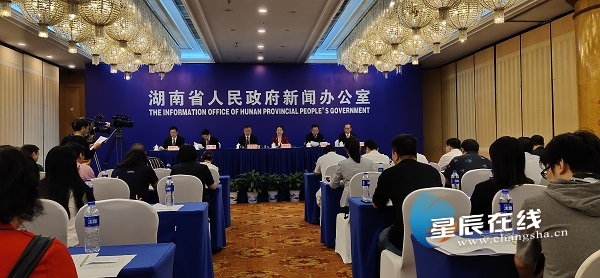 (湖南省人力资源和社会保障厅介绍新中国成立70年来全省人力资源和社会保障改革发展情况。星辰全媒体记者 梁文婷/摄)