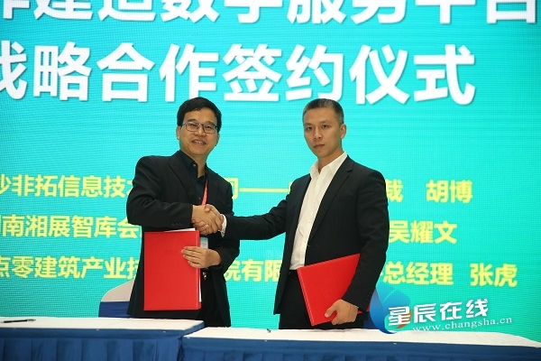 长沙非拓信息技术有限公司和湖南四点零建筑产业技术研究院就推动中非建筑领域的合作签署了合作备忘录。湖南大学国际合作工程管理硕士(MEM)教育项目、建造4.0全系统服务体系、远大住工全球建筑工业现代化教育生态、三一ALC生产线等进行了发布。