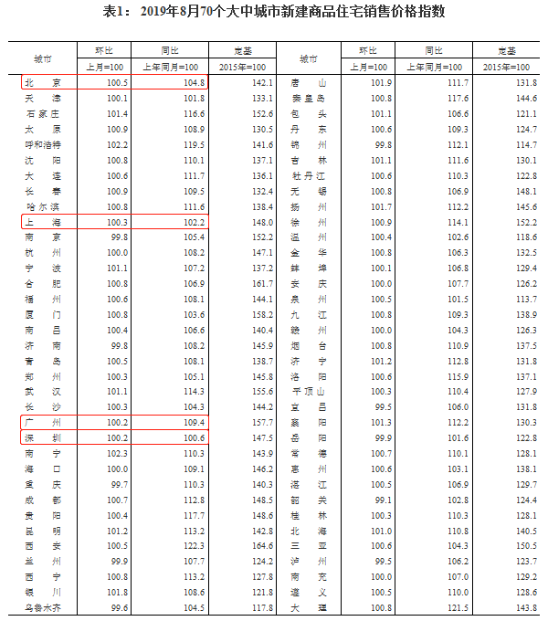 国家统计局10月21日发布9月份70个大中城市商品住宅销售价格变动情况。
