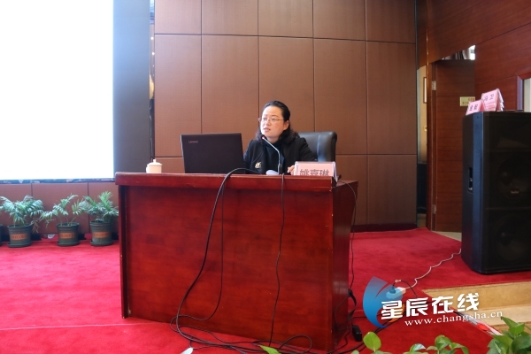 (长沙市纪委市监委第二监督检查室主任姚喜琳为全体人员上廉政教育课。)