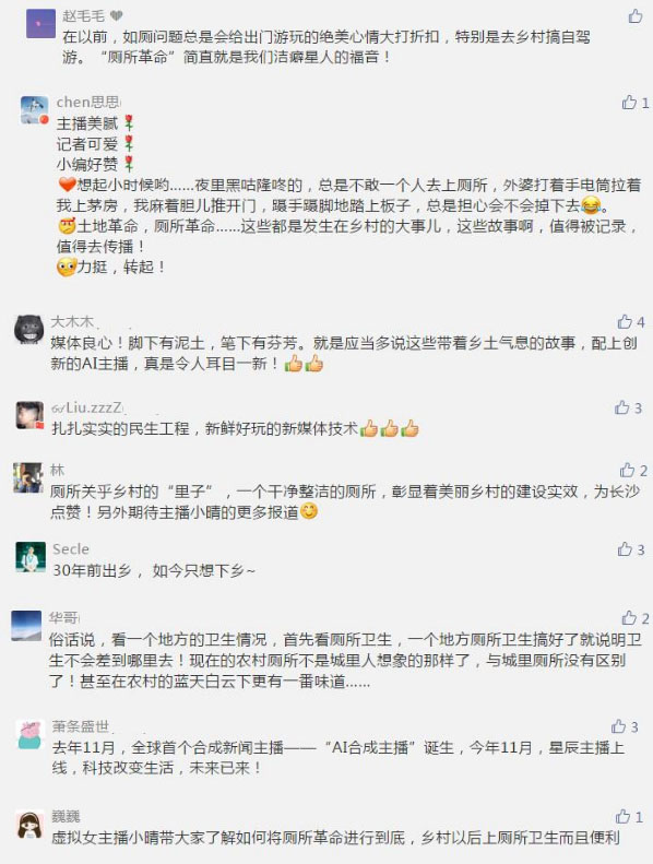 11月19日是世界厕所日,这一天,女主播小晴突然出现,同时《乡村“芳”略--厕所革命的长沙田野调查》开始更新,两大新闻亮点交相辉映,网友互动热烈,神评论不断。有关“虚拟主播播报乡村芳略”的新闻,在朋友圈热热闹闹地刷屏了。