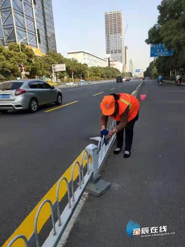 (清理护栏。通讯员供图)