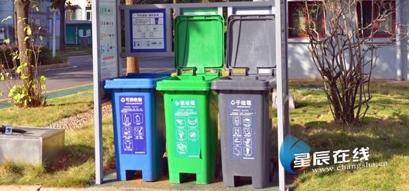 (湘陵小区共有18栋居民楼,每一栋楼下都有一个垃圾分类收集点。)