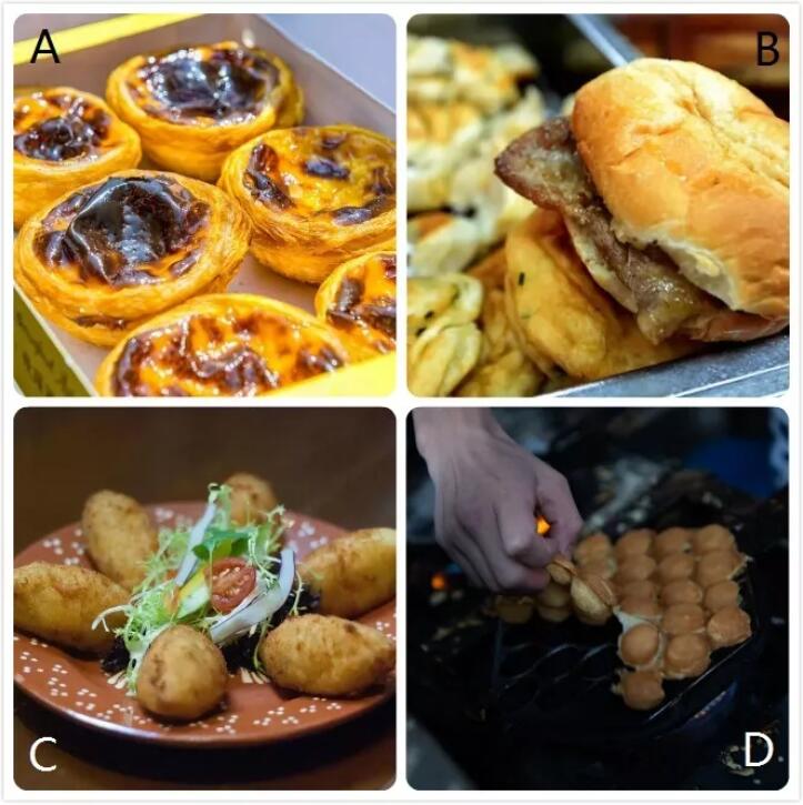 答案:A葡式蛋挞 B猪扒包 C马介休 D鸡蛋仔