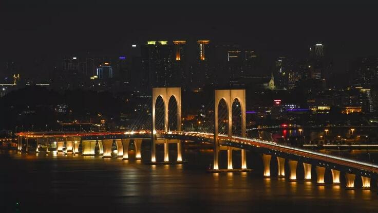 夜晚亮灯的澳门西湾大桥(12月12日摄)。新华社记者 梁旭 摄