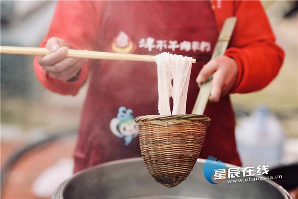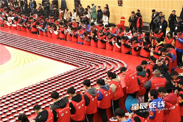 3点30分,在奥运冠军向艳梅、王明娟、世界冠军陶毅、傅祖斌的带领下,1000名参与者津津有味的开始品尝美味的津市牛肉米粉。
