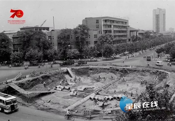 (1986年拆掉中心花坛兴建地下商场时的基建现场。资料图)
