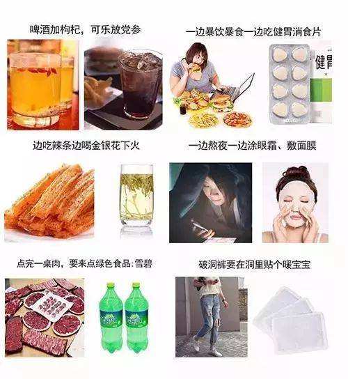 不少90后都在进行“自杀式养生”,即一边作死一边自救:啤酒泡人参、可乐加枸杞;一边吃着麻辣火锅,一边喝着降火凉茶;蹦迪蹦到一半,非得来段扩胸运动;孜孜不倦熬夜,勤勤恳恳护肤……