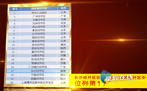 (在商务部最新发布的《2019年国家级经开区综合发展水平考核评价结果》中,长沙经开区跃升3位,在219家国家级经开区中位列第17!)