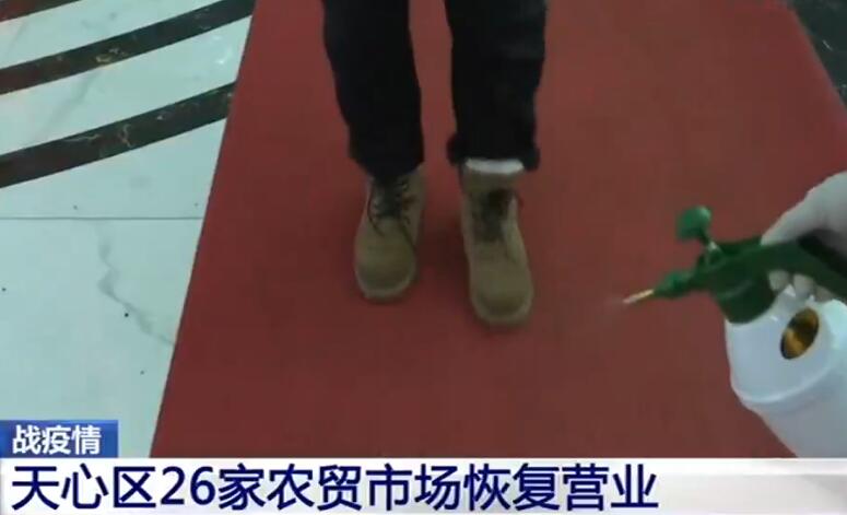 天心区农贸市场开业后在门口设立了服务工作台,所有进出人员都必须佩戴口罩,没有的话现场工作人员会给提供一次性的医用口罩,进入之后还会进行体温测量,在走廊和门口都会设置消毒垫,大家擦拭了鞋底之后才能够进入到市场。【查看详情】