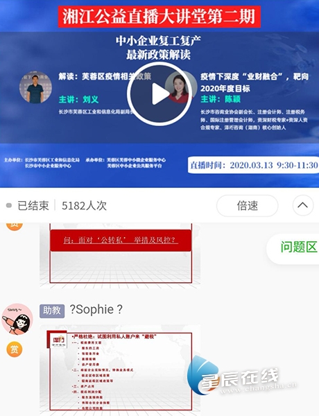 芙蓉区开办线上讲堂解读政策分享经验 助力中小企业走出困境