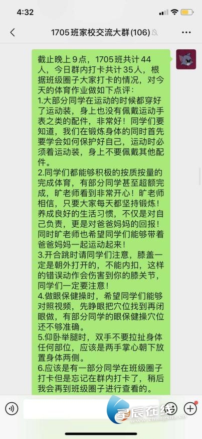 (虹桥小学的体育老师每日例行在班级群中指导孩子们居家运动。)