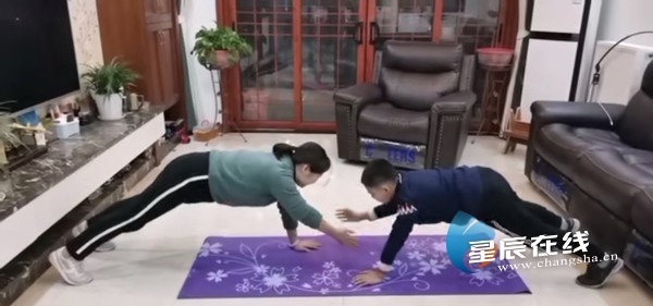 (疫情期间,虹桥小学组织孩子们在家进行亲子锻炼。)