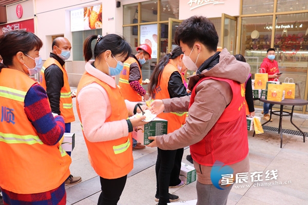 星辰在线3月14日讯(通讯员 陈艳丽)新冠肺炎防疫一线,除了全力奋战的医护人员,人民子弟兵,还有我们一直坚守在生活垃圾处理一线的“城市美容师”。疫情间,在大家都被告知“少出门”时,他们却起早贪黑,默默奉献,为了城市的清洁、为了抗击疫情,做出了积极的贡献。为感谢环卫工人为建设美丽家园和抗击疫情所作出的贡献,望城区杨丰社区联合辖区内爱心门店泰迪故事开展了“情系环卫工 温暖在身边”杨丰社区新时代文明实践学雷锋志愿服务活动。