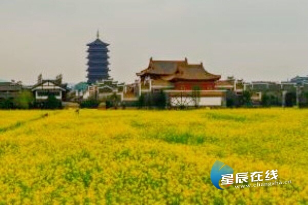 望城区新华联铜官窑古镇景区,一片油菜花海生机盎然。3月5日,景区开始限流开放。