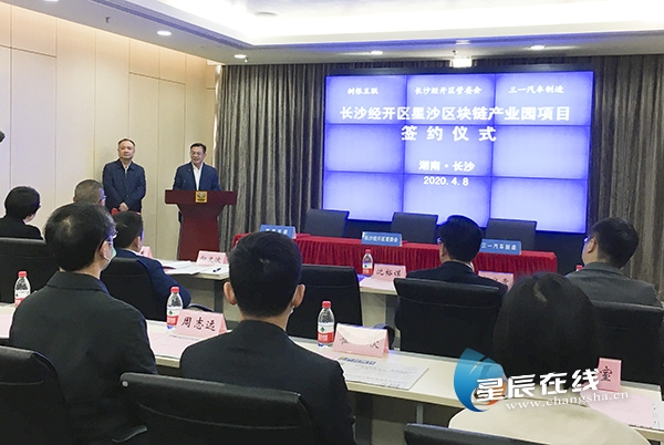 星辰在线4月8日讯(星辰全媒体记者 李林 通讯员 黄姿)4月8日,长沙经开区与三一汽车制造有限公司、树根互联技术有限公司签订战略合作框架协议,以三一云谷为载体,共建星沙区块链产业园(以下简称“产业园”),力争5年内形成千亿级数字经济产业,打造成为全国一流的以区块链技术为特色的综合性数字经济产业示范区。