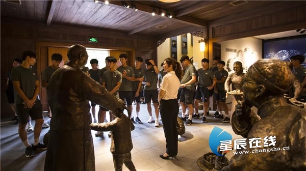 (参加第27届中日韩青少年运动会的千余名运动员们在长沙市非物质文化遗产展示馆参观。)