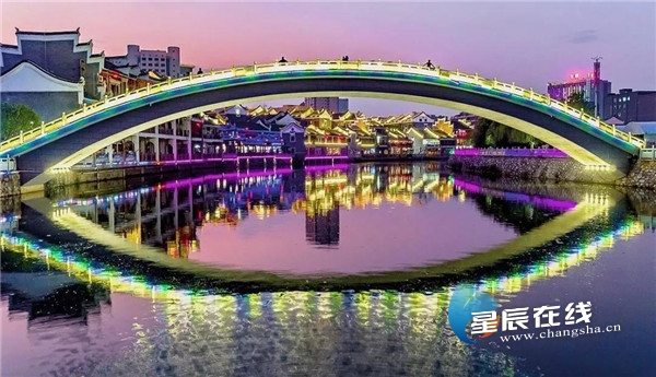 郴江河碧水潺潺,像一条飘带缠绕着郴山