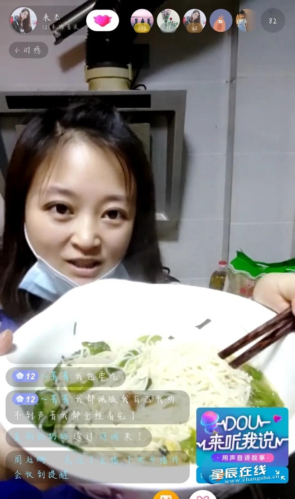 (网络主播正在向网友推介猪油拌粉。视频来源:湖南粮食集团)