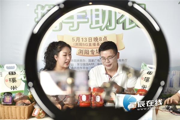 (浏阳市人民政府副市长周明<右一>在线“带货”助农。)