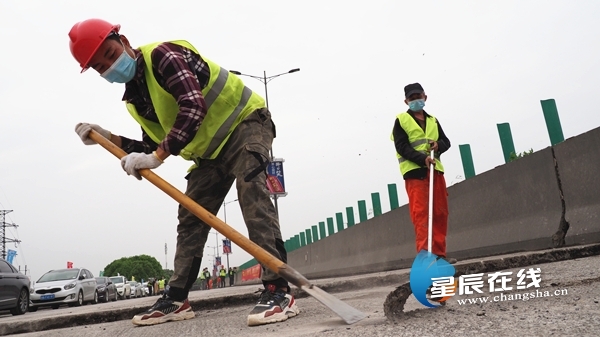 (工人正在抓紧对机场高速的维修加固。星辰全媒体记者 陈宇 摄)