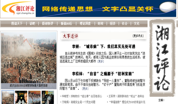 2006年,长沙市委党网星辰在线创办网络专栏《湘江评论》。栏目以“网络传递思想,文字凸显关怀”为宗旨,十几年来,专栏虽数次改版,依然生机无限,成为深受网友喜爱的网络专栏。
