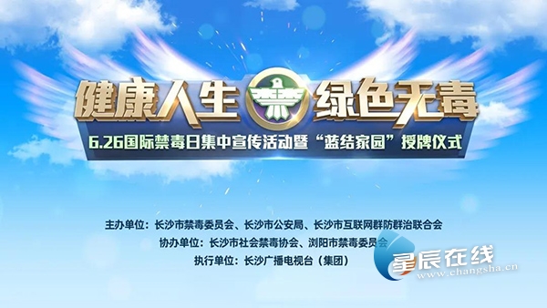 为进一步加大毒品预防教育工作,广泛动员人民群众参与禁毒斗争,群策群力、群防群治,努力构建社会共治格局,在第33个“6·26”国际禁毒日到来之际,结合湖南省“蓝结家园”志愿行动,长沙市公安局、长沙市禁毒委员会办公室共同发起“健康人生,绿色无毒”6.26国际禁毒日集中宣传活动暨“蓝结家园”授牌仪式,发动社会各界力量参与禁毒宣传教育。
