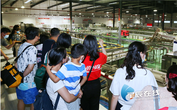 (活动当日,17组家庭来到了位于望城经开区的中粮可口可乐华中厂区,依次参观了可口可乐世界、企业文化走廊、生产车间。)