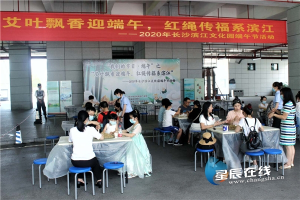 (“艾叶飘香迎端午,红绳传福系滨江”活动现场。长沙滨江文化园供图)