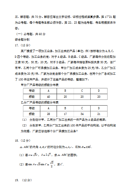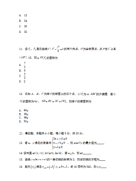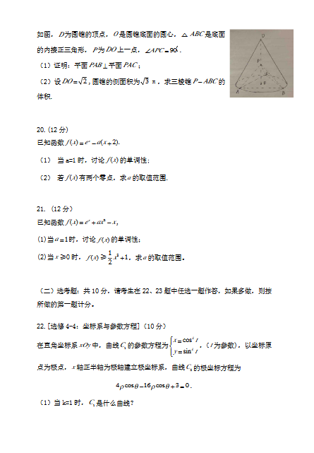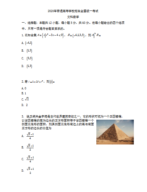 2020年湖南高考试题及答案(数学|文)