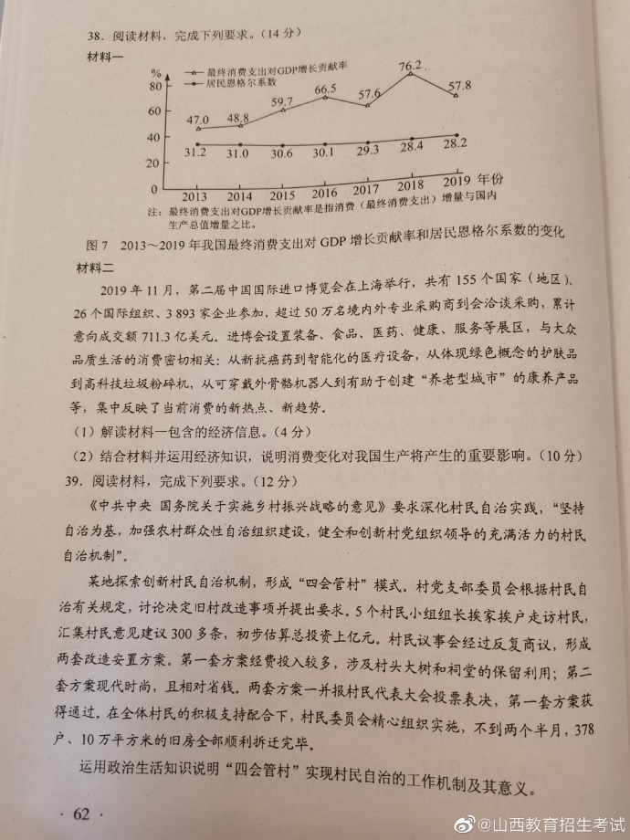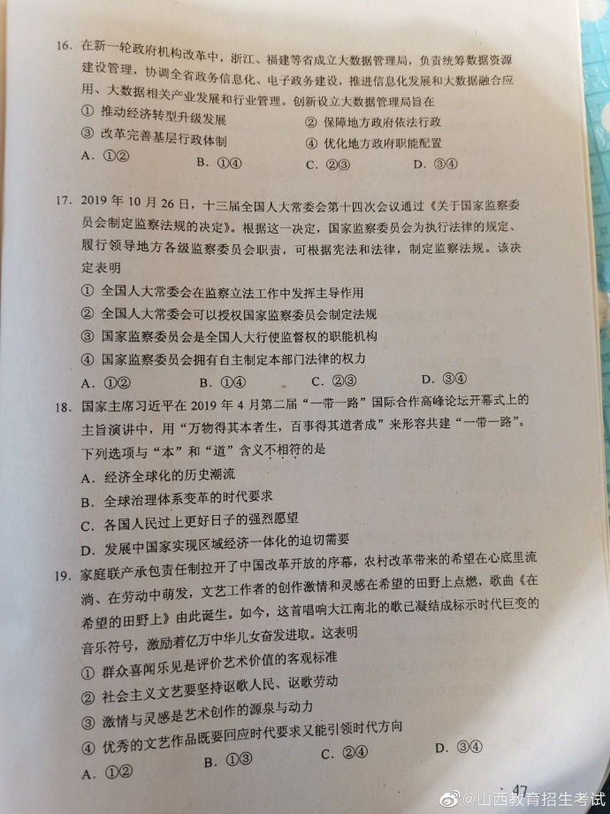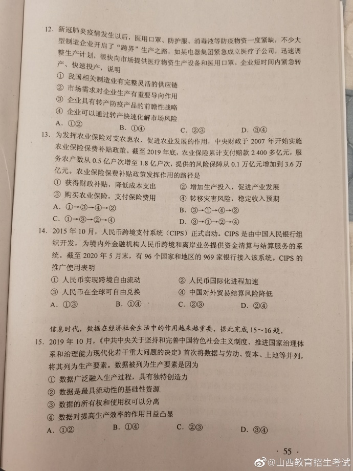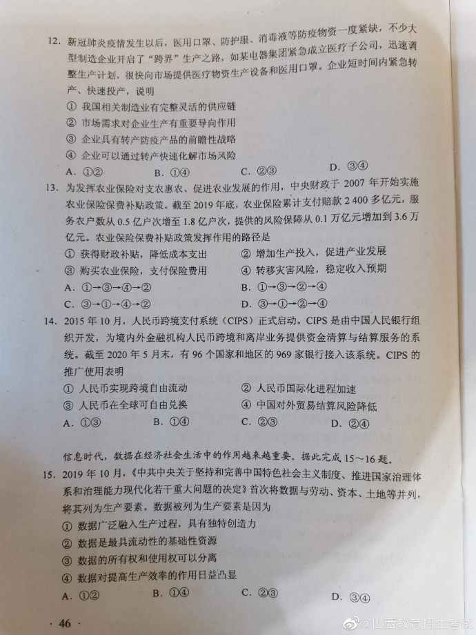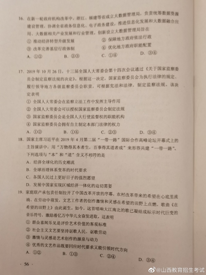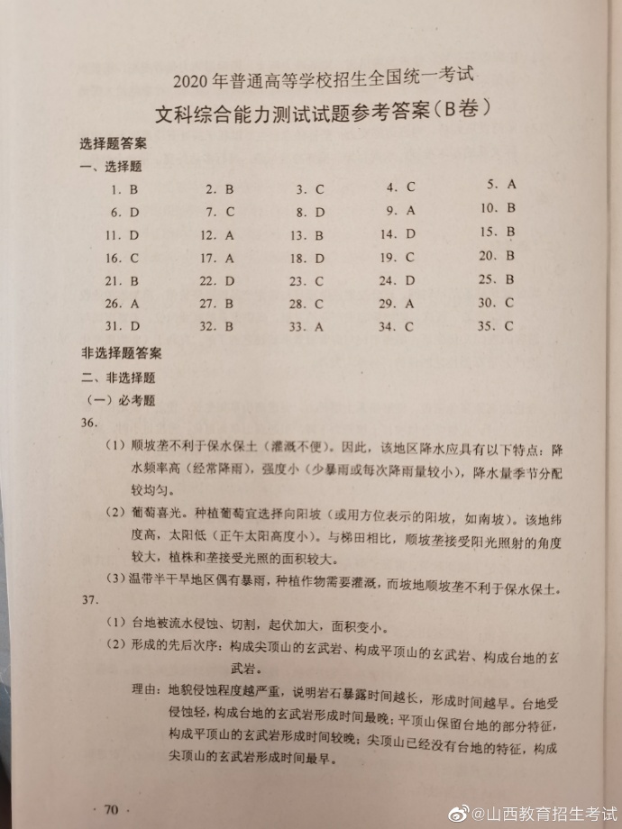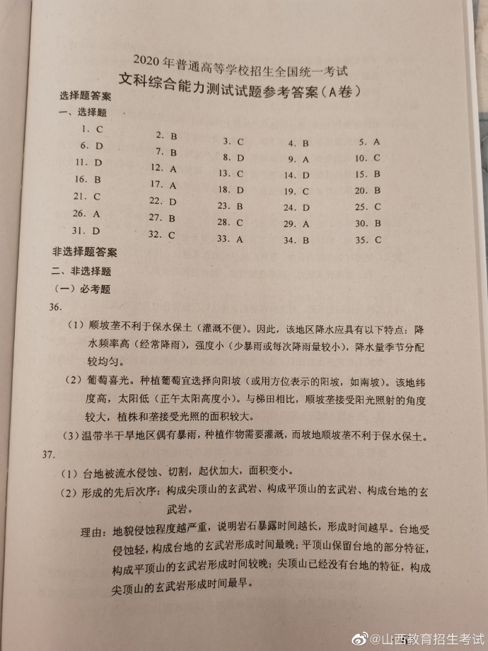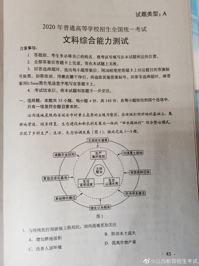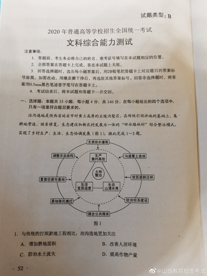 2020年湖南高考试题及答案(文科综合)