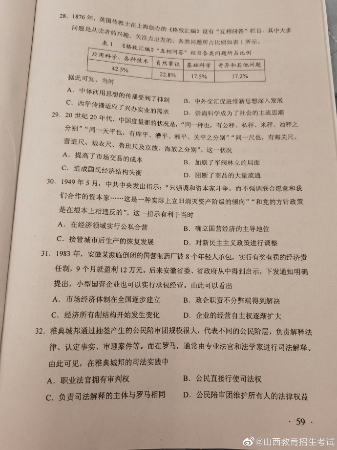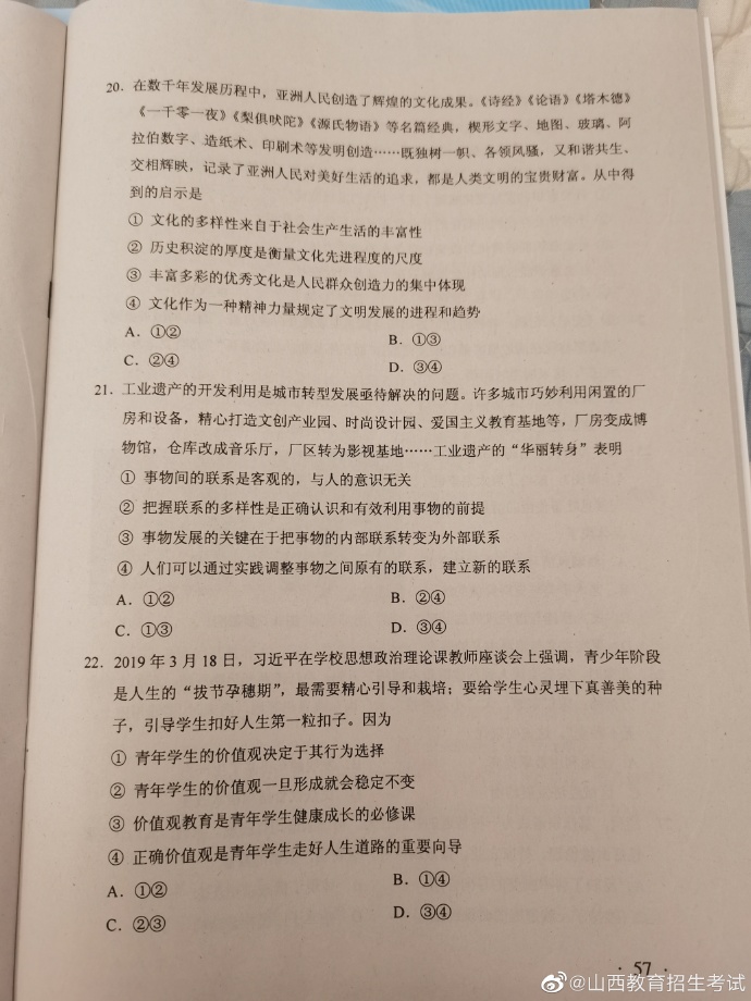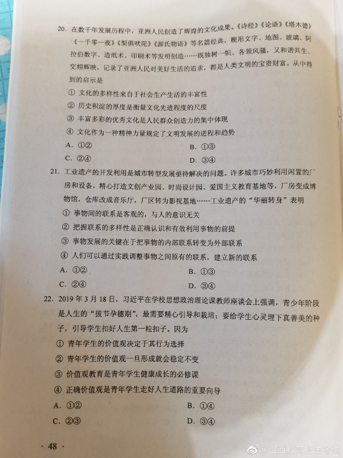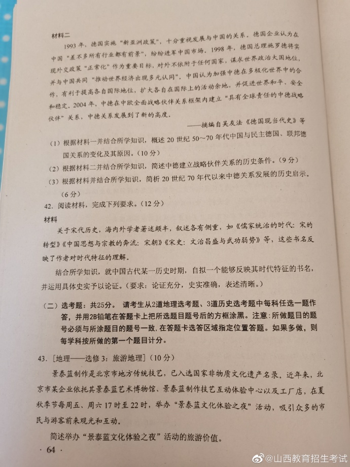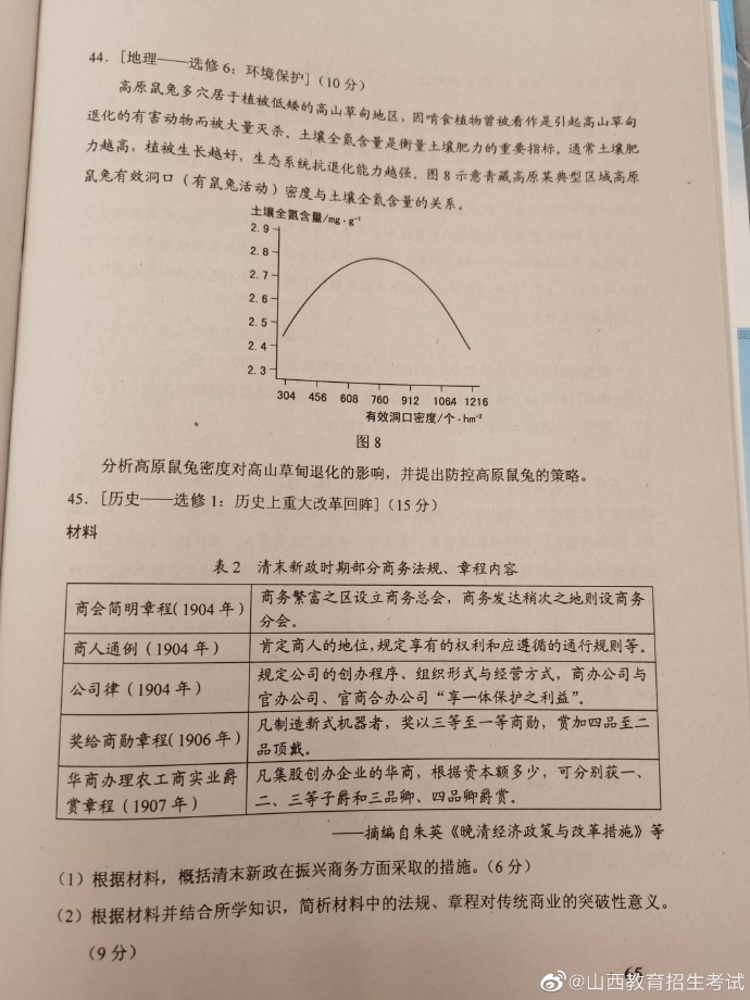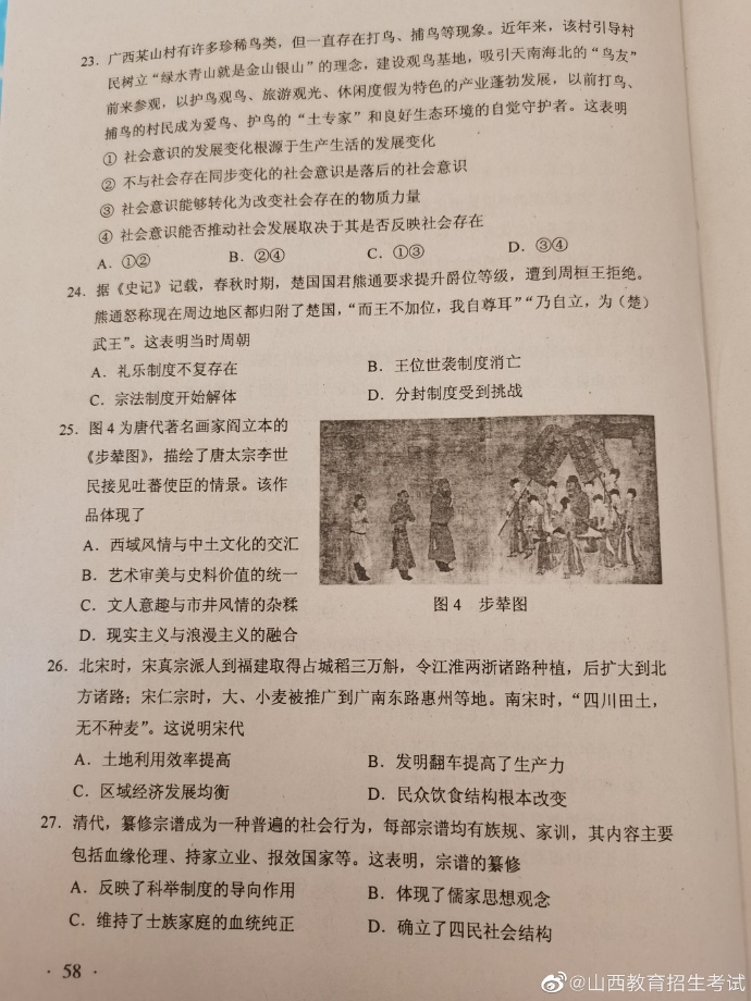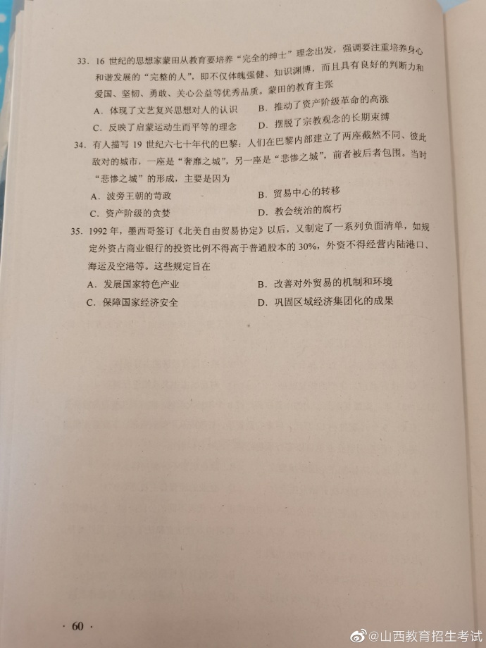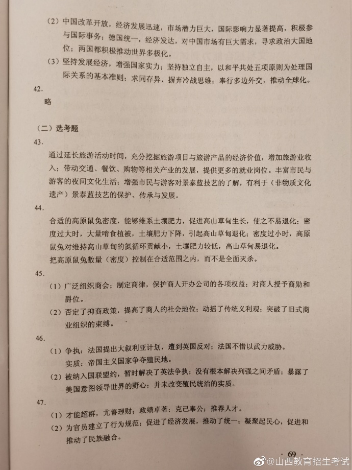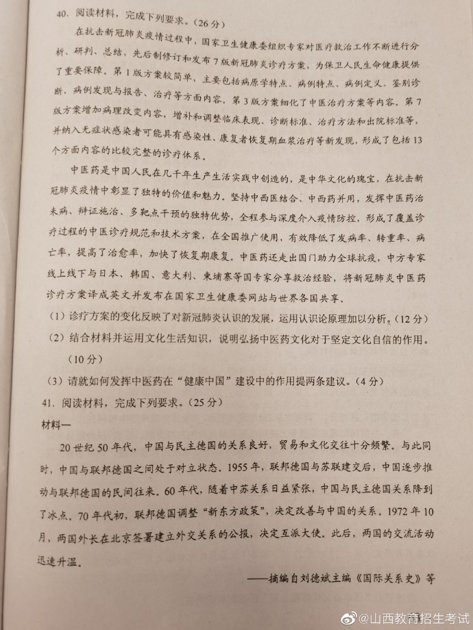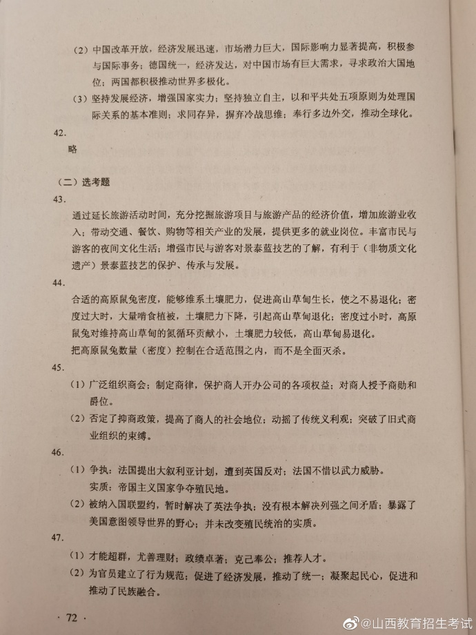 2020年湖南高考试题及答案(文科综合)