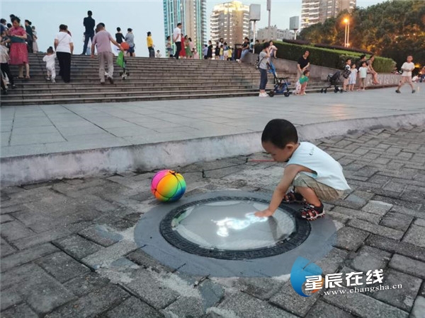 星辰在线7月15日讯(星辰全媒体记者 柳佳路 通讯员 罗展)“崽崽,你看地上的井盖会发光,里边在播放机器人、变形金刚。”近日,市民谭雅带着儿子在长沙县星沙中心广场散步,小朋友一下被地上的屏幕所吸引。“有趣又好玩。”小朋友手舞足蹈地跟着屏幕转动。